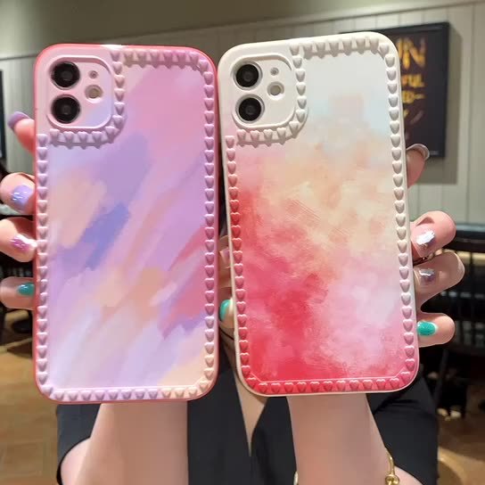 Compatible with Apple , Love Border Watercolor Ink Painting For Phone Case All Inclusive Soft Case