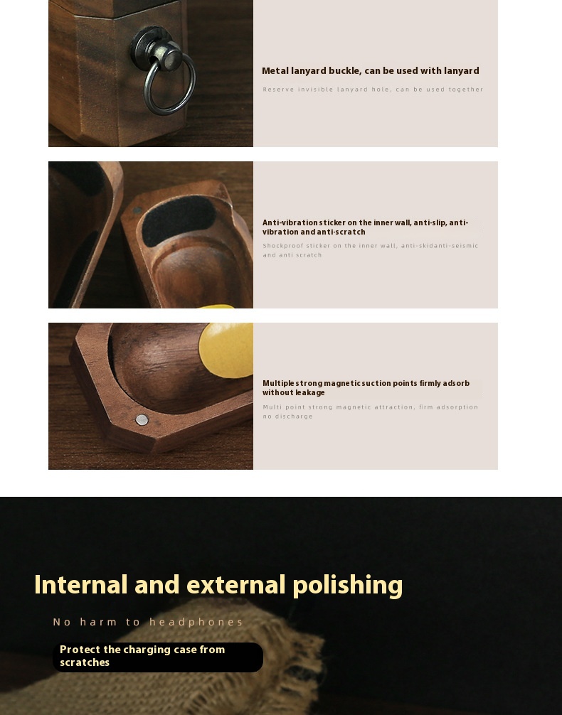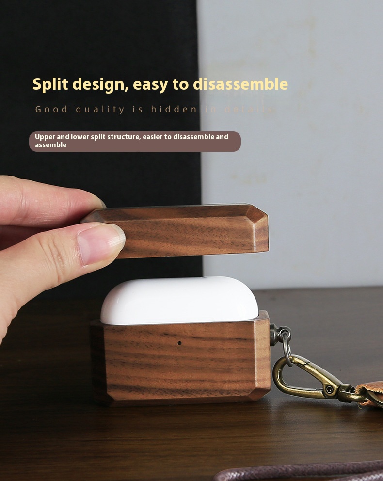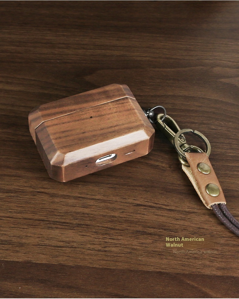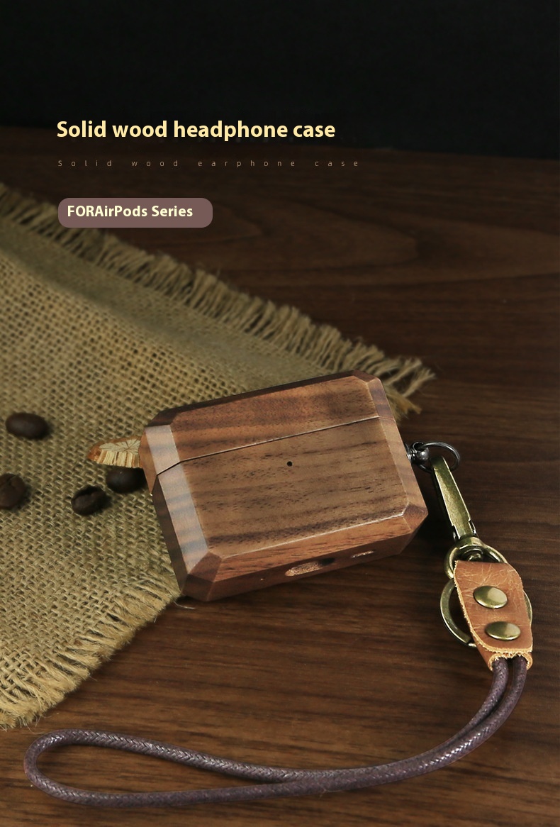 Headphone Case Solid Wood Make Lanyard