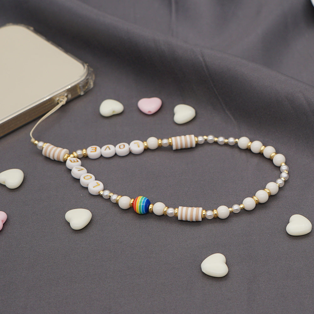 Resin Rainbow Pearl Beaded Mobile Phone Lanyard