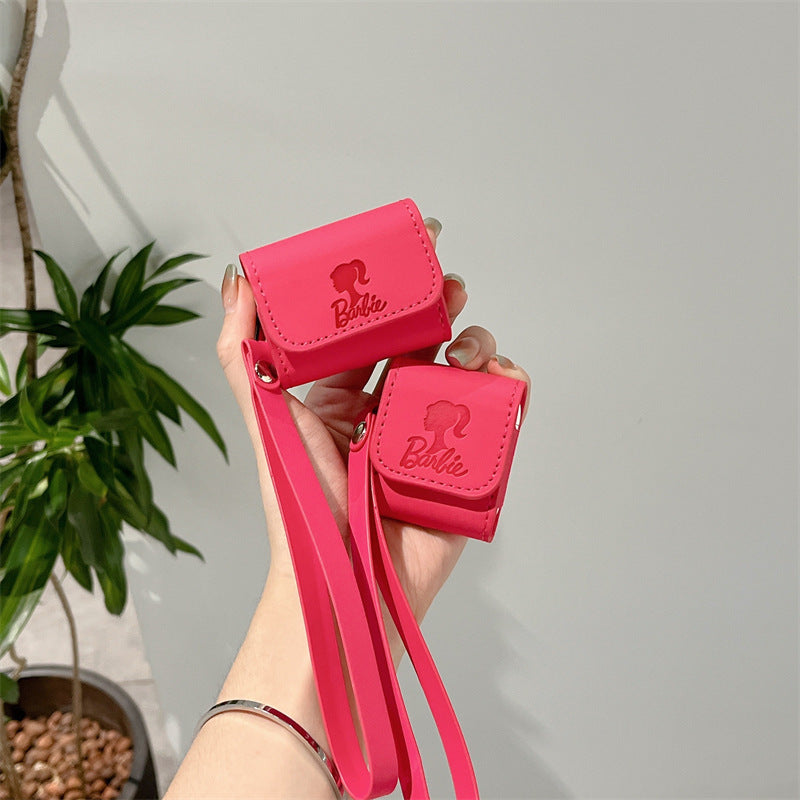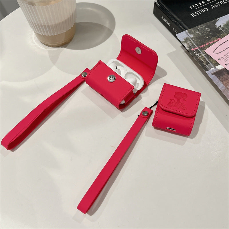 Rose Red Wireless Earphone Case Leather Soft Lanyard
